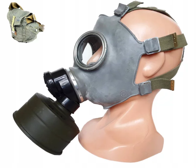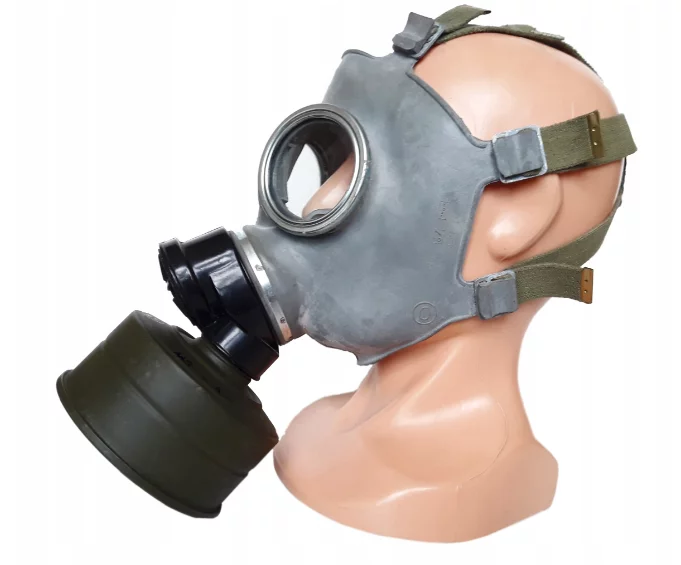 Оригінальний протигаз типу МС-1. Це типово цивільна маска, яка вважається набагато зручнішою, ніж маска слона. Маски 100% не використовувалися, стоковий стан. Рік випуску – 80-90. Ідеально збережені, маски можна закріпити тальком, злегка потьмяніти на металевій оправі окулярів.