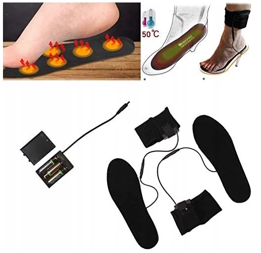 Подогрев стелек для обуви происходит от 3-х батареек ААА «пальчики». Согревают даже в большие морозы.